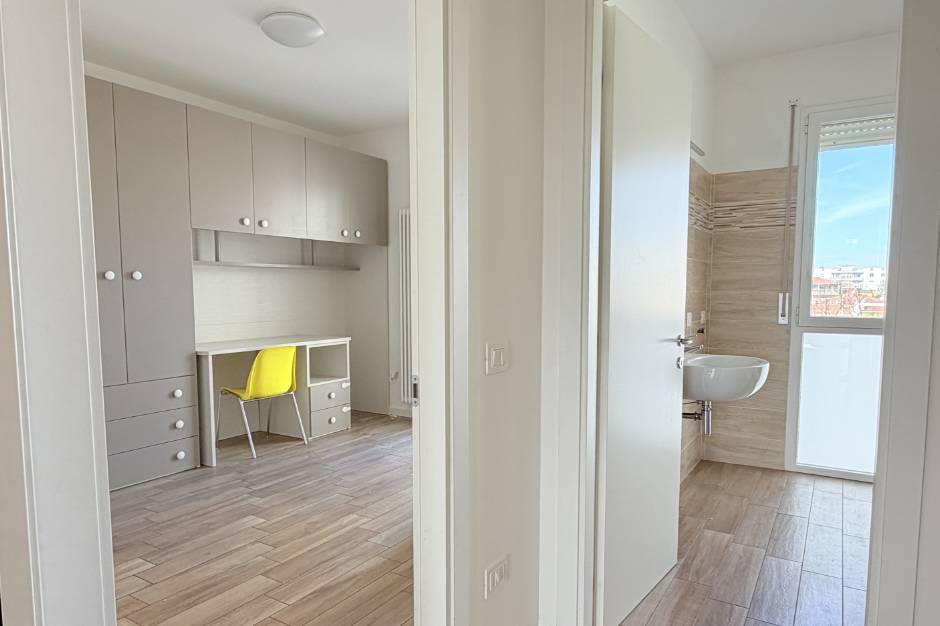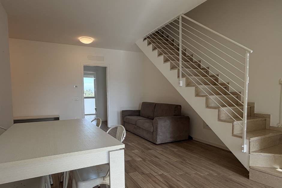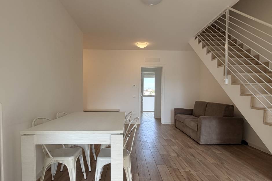 Pesaro città: zona centro-mare, vendesi appartamento duplex con terrazzo panoramico all'ultimo piano di un ottimo e recente complesso residenziale in posizione esclusiva tra il centro e il mare. La residenza ha una superficie interna di circa 120 mq. e si sviluppa su due livelli, precisamente al piano terzo e piano quarto (sottotetto) di un condominio signorile. Al primo livello si compone di un ampio soggiorno con cucinotto con accesso al balcone a loggia di circa 5 mq., una camera di ampie dimensioni con piccolo balcone annesso, ed un bagno con finestra. Tramite una comoda scala in muratura si accede al secondo livello (piano sottotetto) dove troviamo due ampi vani utilizzabili come camere da letto di cui uno con accesso al bel terrazzo di circa 12 mq. da cui si scorge una piacevole vista sui tetti della città, e un ulteriore bagno finestrato. Il secondo livello, oltre a essere collegato internamente con il piano sottostante, è accessibile anche autonomamente dall'esterno, sia tramite la scala condominiale che dall'ascensore. A parte, può essere acquistato un comodo garage al piano interrato del fabbricato, raggiungibile direttamente con ascensore al piano garage. La residenza si presenta già libera, in condizioni impeccabili a tal punto da poter essere considerata seminuova. Le utenze sono completamente autonome, è presente l’impianto di aria condizionata oltre al termo-cappotto esterno, che conferisce all'immobile un'elevata efficienza energetica (Classe "A1"). La proprietà si trova in posizione strategica, a metà strada tra il centro storico e il lungomare di Pesaro, raggiungibili entrambi con una passeggiata di soli 5 minuti; nelle adiacenze sono presenti diversi supermercati, l’ufficio postale, la fermata dell’autobus e gli altri servizi cittadini concentrati nel centro città. Prezzo: € 390.000. Da aggiungere il costo del garage, acquistabile a parte. Classe energetica A1 Ipe 38,67. Chiamaci subito per una visita!! al seguente recapito telefonico: 072131136.