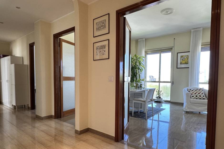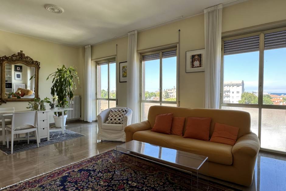 Pesaro città: zona centro-mare, solo per affitto transitorio, affittasi appartamento panoramico (vista mare) semiarredato di 120 mq posto al quarto piano di un buon condominio con ascensore. La residenza è composta da ingresso spazioso con armadiatura, ampio soggiorno luminoso con vista città e mare, cucina con piccolo balcone, bagno, ripostiglio uso studio, disimpegno, due camere, un ulteriore bagno oltre ad una soffitta al piano quinto ed un posto auto coperto nel garage condominiale. Gli impianti di acqua e riscaldamento sono centralizzati e compresi nella quota condominiale di circa euro 250 mensile, mentre l'aria condizionata è presente in tutte le stanze ed è autonoma. La residenza posta al quarto piano gode di un'ottima luce e la zona di ubicazione, pur essendo centrale, risulta molto tranquilla circondata da viali alberati e limitrofa a tutti i servizi e negozi per i cittadini compreso un supermercato. La posizione dell'immobile è strategica: nelle adiacenze di Rocca Costanza e comunque prossima alle principali vie del centro di Pesaro e limitrofa alla spiaggia centrale di viale Trieste, ricche di negozi e attività varie. L'appartamento è ideale per chi ha l'esigenza di vivere in comodi spazi e vuole abitare in zona centro-mare con la comodità di tutti i servizi a portata di mano. Affitto mensile transitorio a canone concordato € 900 + € 250 spese condominiali (incluse le utenze di gas e acqua). NON SI AFFITTA PER LUNGHI PERIODI. Classe energetica E Ipe 275,01. Chiamaci subito per una visita!! al seguente recapito telefonico: 072131136.