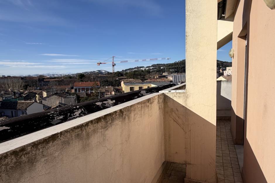 Pesaro città: zona centro storico fuori dall'isola pedonale, vendesi luminoso e panoramico attico di circa 95 mq. circondato da balconi, posto al quinto piano di condominio con ascensore. La residenza è già libera e si compone di un ampio soggiorno con accesso al balcone di circa 20 mq che circonda l'immobile su due lati, una cucina semi-abitabile, un corridoio che separa la zona notte dove troviamo una camera matrimoniale con accesso al balcone, un bagno finestrato, una seconda camera matrimoniale sempre con balcone e bagno dedicato. L'appartamento in generale si presenta in buono stato di manutenzione e si ritiene necessario un intervento di sola manutenzione ordinaria, tra cui la levigatura dei pavimenti in parquet e la tinteggiatura dei parapetti dei terrazzi. Le utenze sono autonome e le spese condominiali ammontano ad euro 70,00 mensili. La posizione dell'immobile risulta strategica, soprattutto per chi ama vivere il centro beneficiando dei principali servizi e delle sue comodità, a contatto con i suoi negozi, con i luoghi della socialità, i caffè, le enoteche, il teatro. Ci troviamo all'estremità dell'isola pedonale, nei pressi del corso principale di Pesaro e nelle vicinanze dell'ospedale e della stazione ferroviaria. In soli dieci minuti a piedi si può raggiungere Piazza Del Popolo ed al tempo stesso con una passeggiata di circa 15 min. si arriva al lungomare della città. Prezzo: € 290.000. Cl. En. "G" - I.P.E.: 323,44 Kwh/mq anno. Chiamaci subito per una visita!! al seguente recapito telefonico: 072131136.